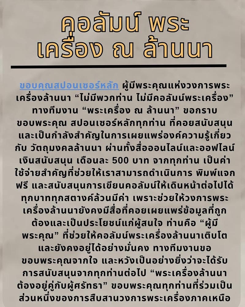 คอลัมน์พระเครื่อง ณ ล้านนา ฉบับที่ 5 วันที่ 1 มีนาคม 2568 ยืนระยะยังไง…ให้อยู่ได้ในสถานการณ์นี้ ในช่วงเวลาที่ตลาดพระเครื่องกำลังอยู่ในสภาวะผันผวน หลายคนบ่นว่าขายยาก คนเล่นน้อย และกระแสการเช่าหาพระลดลงอย่างเห็นได้ชัด จะเห็นว่าร้านพระหลายร้านต้องปิดตัวลง บางรายต้องพักการซื้อขายชั่วคราว รอให้สถานการณ์ดีขึ้น แต่ในขณะเดียวกัน เซียนพระบางรายกลับยืนหยัดอยู่ได้อย่างมั่นคง หรือบางคนกลับโตสวนกระแสแบบเงียบ ๆ สิ่งเหล่านี้เกิดขึ้นเพราะอะไร? #คำตอบของเรื่องนี้ไม่ได้อยู่ที่ “ยุคขาลง” หรือ “เศรษฐกิจไม่ดี” เพียงอย่างเดียว แต่ขึ้นอยู่กับ “วิธีการยืนระยะ” ของแต่ละคนต่างหาก 1. มาตรฐานต้องชัด…ซื่อสัตย์ต้องมาก่อน หากพระแท้ ก็ต้องกล้ารับประกันอย่างเต็มที่ หลายคนอาจมองว่าการรับประกันคืนเงินเป็นภาระ แต่ในความจริงแล้วสิ่งนี้คือหัวใจสำคัญของการยืนระยะในระยะยาว ร้านไหนซื่อสัตย์ ซื่อตรง มาตรฐานชัดเจน ร้านนั้นจะมีลูกค้าประจำที่พร้อมสนับสนุนเสมอ 2. อย่าหยุดพัฒนาตัวเอง โลกพระเครื่องเปลี่ยนแปลงเร็วขึ้นทุกวัน จากแต่ก่อนที่เช่าหากันแค่หน้าร้านหรือสนามพระ ทุกวันนี้การซื้อขายออนไลน์เข้ามามีบทบาทอย่างมาก เซียนพระรุ่นใหม่หลายคนเกิดจากการขายใน Facebook, Line หรือ Tiktok การปรับตัวให้ทันเทคโนโลยีจึงเป็นสิ่งที่หลีกเลี่ยงไม่ได้ ใครยังคิดว่า “ขายออนไลน์แล้วไม่ขลัง” ต้องลองเปลี่ยนความคิดใหม่ เพราะทุกวันนี้การไลฟ์สดปล่อยพระเครื่องกลายเป็นช่องทางทำเงินมหาศาลของเซียนพระรุ่นใหม่ในหลายพื้นที่ 3. เงินทุนไม่สำคัญเท่าเครดิต หลายคนคิดว่าการมีทุนเยอะคือสิ่งสำคัญในการค้าพระเครื่อง แต่ความจริงแล้วสิ่งสำคัญที่สุดคือ เครดิต มีเงินเป็นล้าน แต่ไม่มีคนเชื่อใจ ก็ทำอะไรไม่ได้ แต่ถ้ามีเครดิตดี พระอยู่ในมือแค่ไม่กี่องค์ ก็สามารถปั้นตัวเองขึ้นมาได้ 4. รู้จักพลิกวิกฤตเป็นโอกาส ในสถานการณ์ที่คนเล่นน้อย ต้องมองหาโอกาสจากจุดเล็ก ๆ เช่น การเน้นกลุ่มนักสะสมสายอินเตอร์ หรือเปิดตลาดพระเครื่องสายงานบุญ เช่น พระสวยราคาเบา ๆ สำหรับทำบุญหรือของขวัญปีใหม่ 5. อย่าลืมสายสัมพันธ์…วงการนี้อยู่คนเดียวไม่ได้ วงการนี้อยู่ได้ด้วยการแบ่งปัน ถ้ามีพระแล้วรีบขายให้เพื่อน ๆ หรือช่วยเชียร์พระให้คนอื่นบ้าง จะทำให้เกิดความสัมพันธ์ที่ดี ไม่ใช่แค่เรื่องซื้อขาย แต่เป็นการสร้างเครือข่ายที่พร้อมจะช่วยเหลือกันในระยะยาว #สรุป การยืนระยะในวงการพระเครื่อง ไม่ใช่แค่เรื่องของการมีทุนหรือการมีของดีในมือเท่านั้น แต่คือการปรับตัวตามสถานการณ์ รักษามาตรฐาน และ